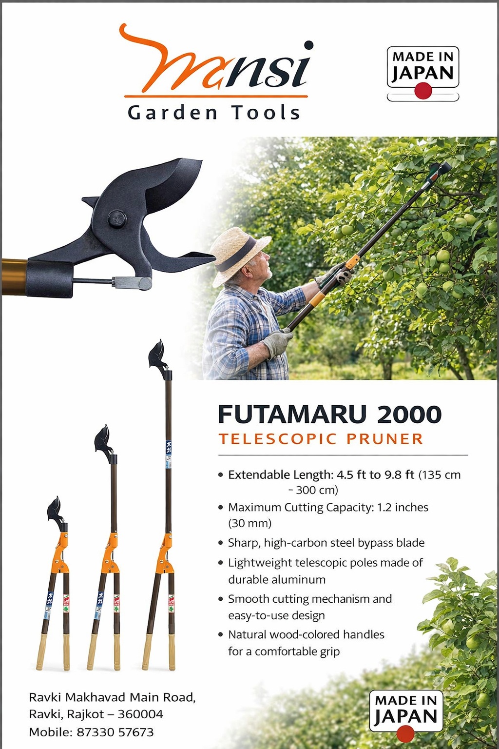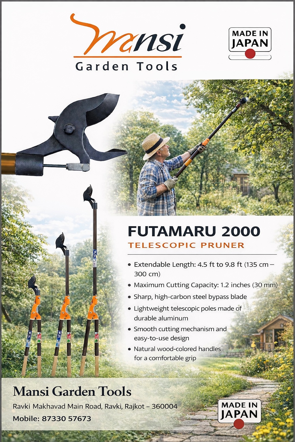 Mansi Garden tools is established in the year 2001 and engaged in manufacturing of Gardening and Agricultural Equipment. Since inception, over a decade, we have developed unique capabilities to offer exclusive & tailor made product range. We manufacture the offered equipment using premium quality metal and other requisite material, procured from the most prestigious vendors of the industry while keeping in mind the quality standards laid by international authorities.
